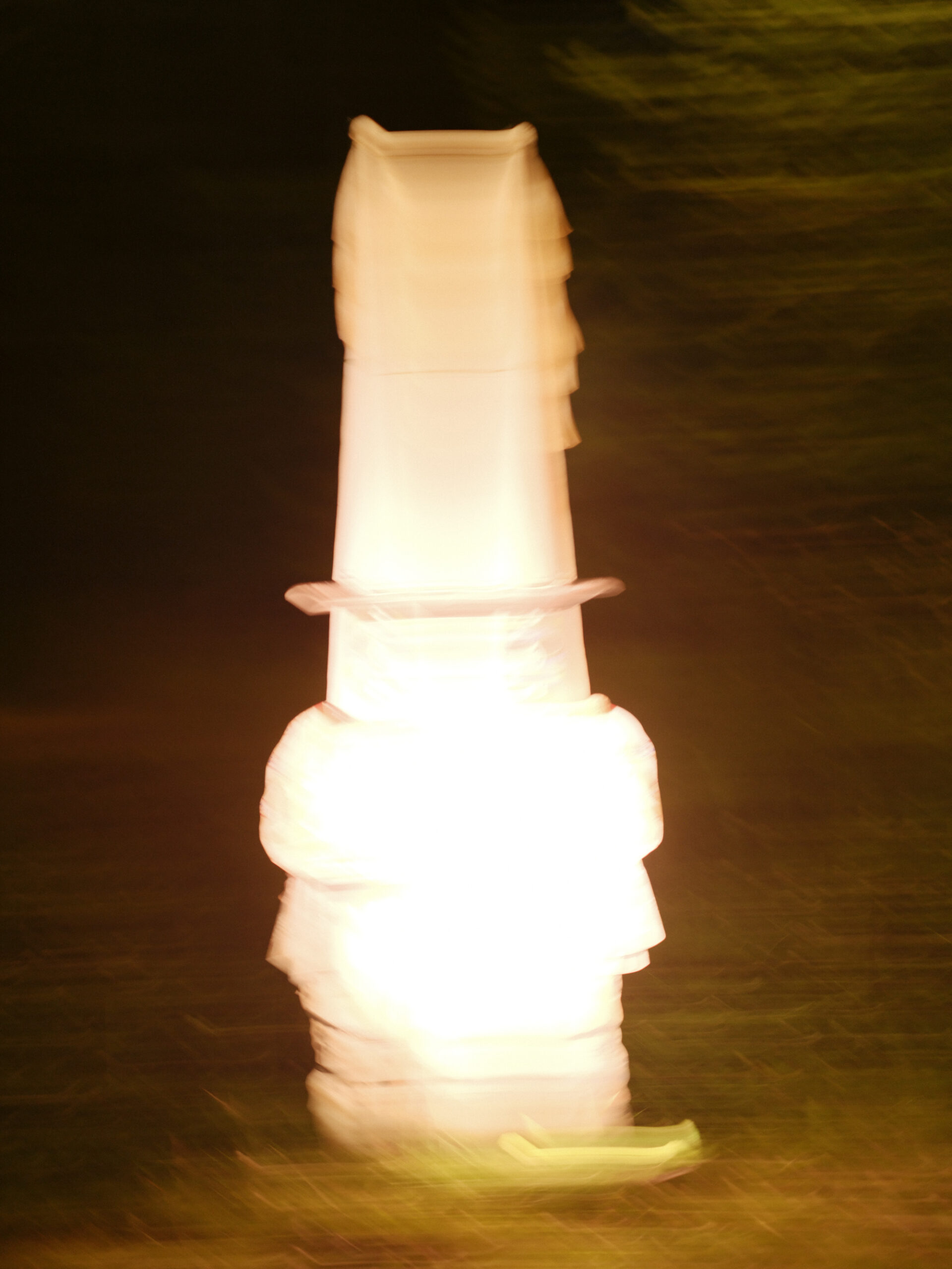 Fotografien vom Volksmusikfestival «Obwald» im Juli 2023. Das erste Bild zeigt ein «Kukeri», eine Sagenfigur aus Bulgarien. In diesem Fall handelt es sich um eine Aufnahme einer auf Holz aufgemalten Kukeri-Figur, die mit langer Belichtungszeit abends aufgenommen wurde. Roman Britschgi seien viele spannende alte Geschichten und Mythen zu Ohr gekommen, als er in Bulgarien vor Ort nach Musik suchte. «Sie erinnerten mich an unsere eigenen Sagenwelten», so der 2023 neu angetretene, künstlerische Leiter.