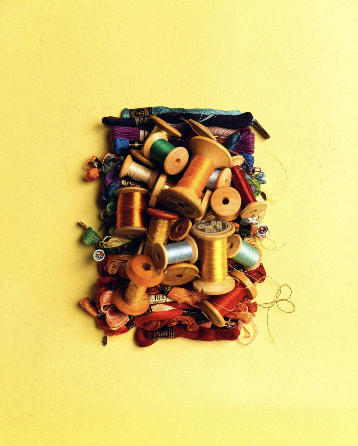 Fotografie einer Collage aus Fadenspulen, die in einer grösseren Holzkiste auf dem Estrich des Kloster Melchtals gelagert wurden. Arrangiert und fotografiert wurden die Spulen zum Zweck der Bebilderung des Titelblatts meiner Masterarbeit [1]. Im Zusammenhang mit den dort untersuchten Mobilitäten von Benediktinerschwestern im ausgehenden 19. Jahrhundert, war ich auf der Suche nach einer visuellen Übersetzung der unterschiedlichen Realitäten innerhalb der Klostermauern. Während einige Schwestern auszogen, blieben andere zurück. Bei meiner Recherche begegneten mir Verschriftlichungen beider Realitäten. Man sponn auf unterschiedliche Weise an ein und derselben Erzählung eines von Leid geprüften Klosters zu Kulturkampfzeiten.